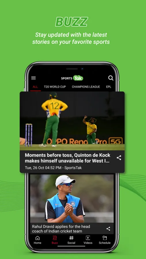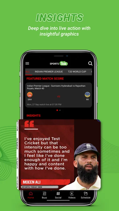 The Sports Tak App offers latest sports news, videos, live match scores, match centre, infographics, statistics and highlights for your favorite sports leagues such as IPL, EPL, NFL NBA, World Cup, Wimbledon, French Open, PGA, F1 and all other major tournament.