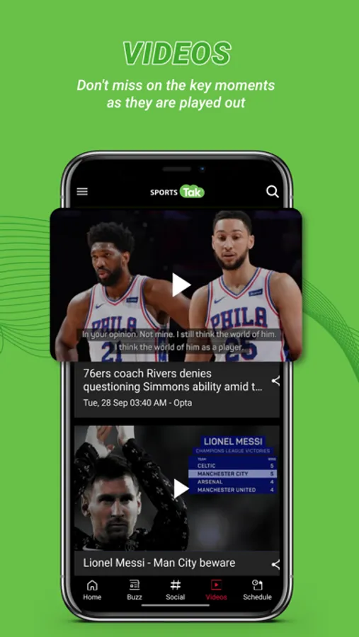 VIDEOS – When on the All tab, watch videos in an instant from all 9 sports, or chose any league from the top navigation bar and watch videos from that particular league by selecting the Video tab from the bottom bar. Videos are a compilation of Highlights, Press conferences, behind the scenes and Match Analysis.