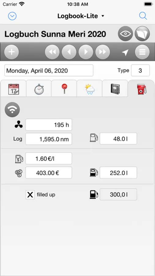 In the journal you can keep a diary and record technical information. You can also insert photos into the logbook. With activated tracking function Logbook Lite records your route as GoogleTrack and displays it in the logbook.