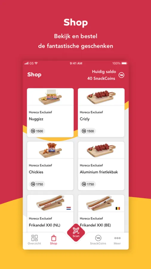 Als je genoeg SnackCoins hebt gespaard kan je deze inruilen voor fantastische geschenken die horeca-exclusief, familiaal of 100% Belgisch zijn. Je hebt keuze uit gratis snacks, handige tools voor in de frituur of leuke producten voor jezelf of je familie.