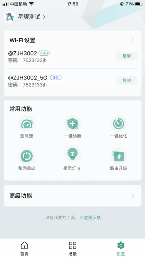 -WiFi管理:支持查看、分享、修改WiFi名称与密码,支持调整WiFi强度与其他专业配置,“一键优化”让无线网络稳定且流畅。