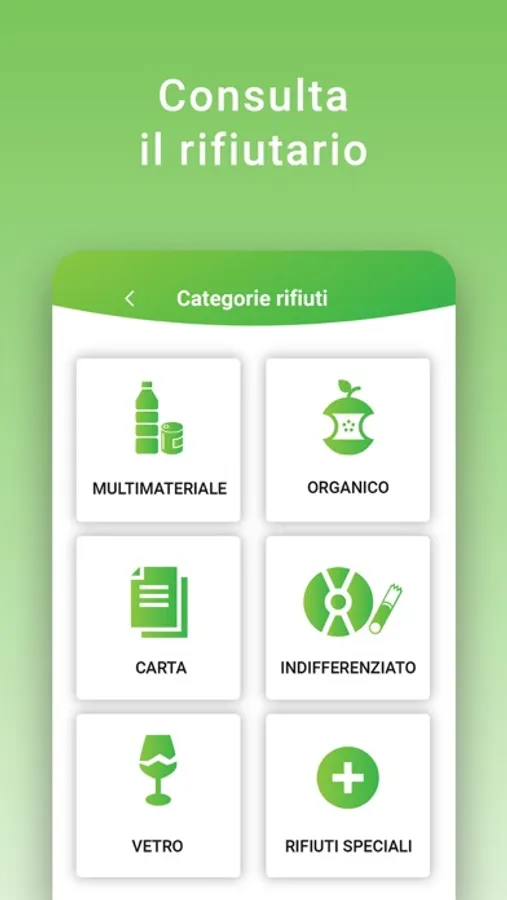 - ottenere informazioni dettagliate su come riciclare ogni tipo di scarto;