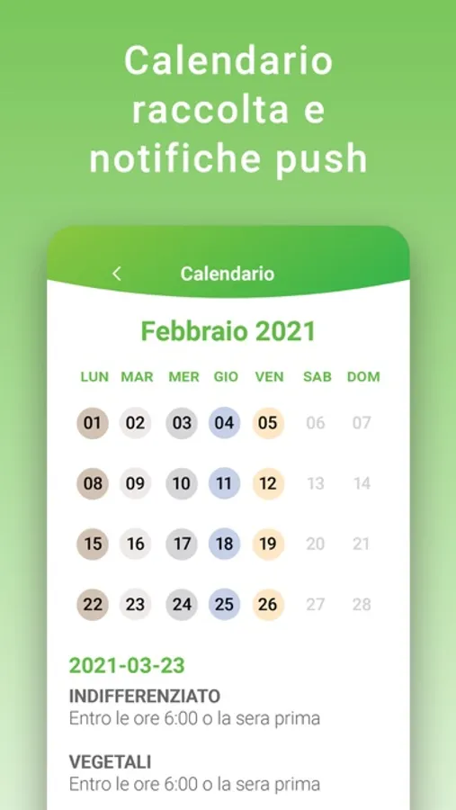 - ricevi le notifiche sui giorni di conferimento per le varie categorie di rifiuti;