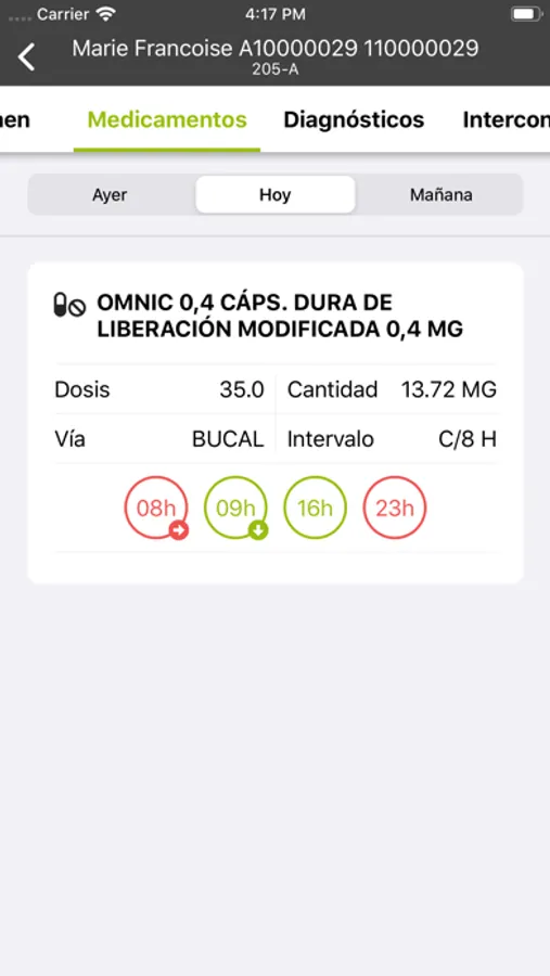 Puedas visualizar todos los medicamentos recetados al paciente y gestionar la administración.