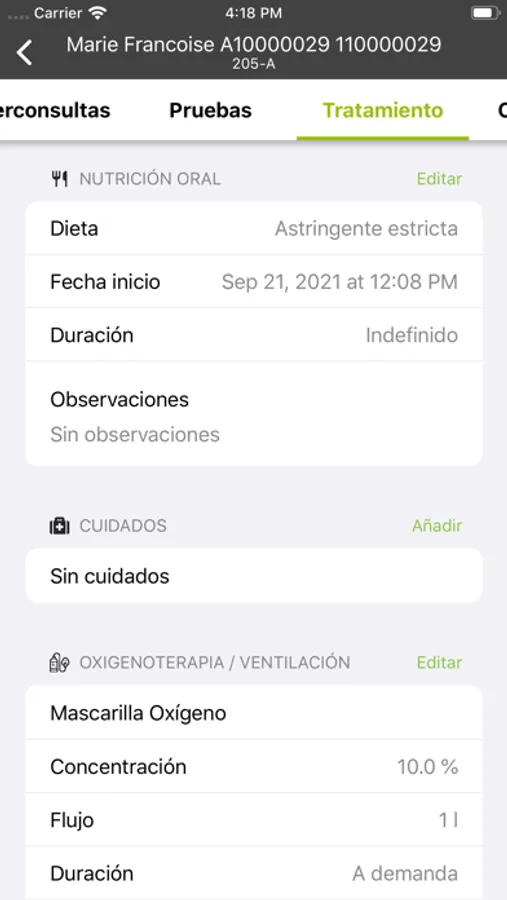 Pruebes asignar al paciente que tipo de dieta tiene que seguir y en que periodos de tiempo ha de cumplirla.