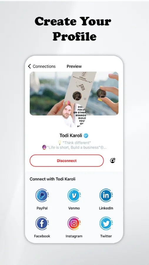The GoTaps App allows you to customize both a personal and a business profile, so you are able to connect with others at any event.