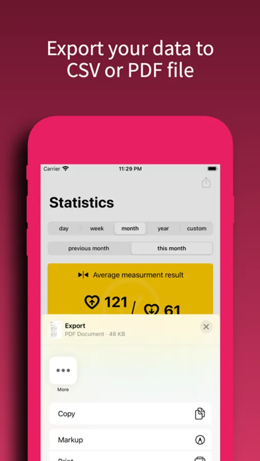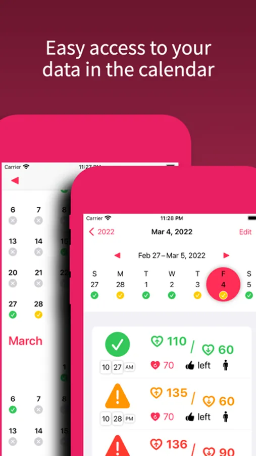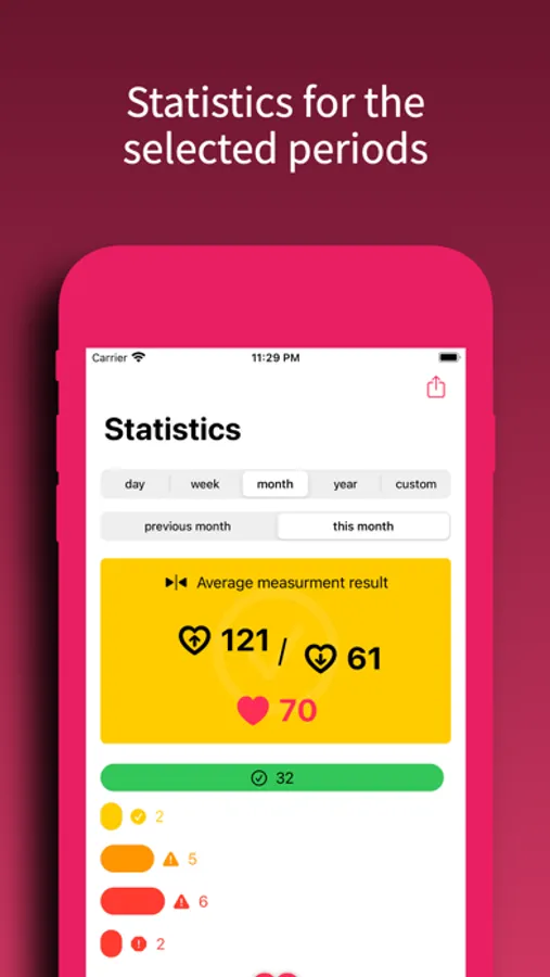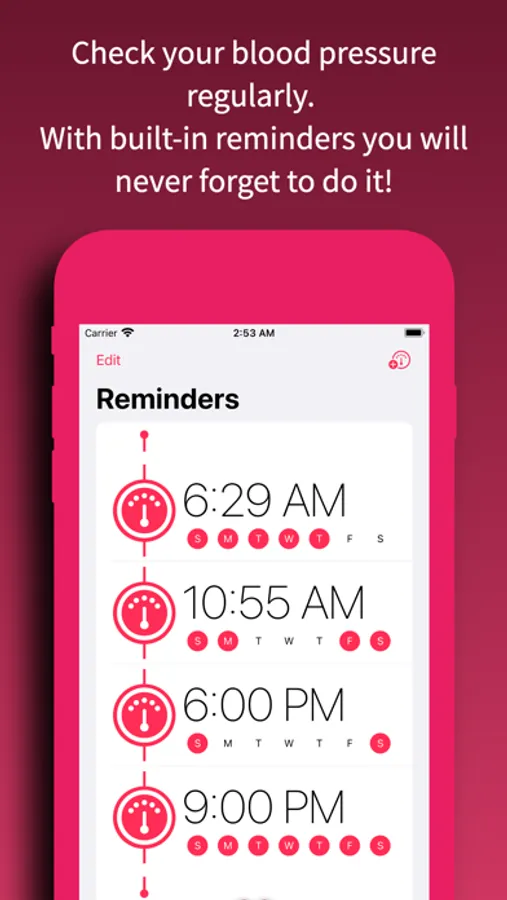 You can access the data in the calendar view as well as the app allows you to observe results on statistics. If you measure your blood pressure the regular testing is very important. The app has built-in reminding system. It is possible to set multiple alarms.