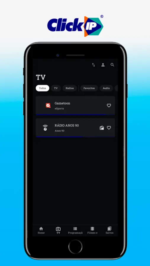 Você não precisa ficar sentado em frente à TV para acompanhar os programas que você gosta. Assista tudo através do aplicativo ClickIP Play. Você pode gravar programações, retroceder e ver a grade completa de todos os canais.