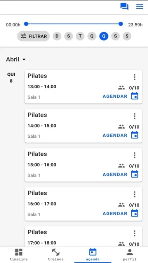 - Consulte a AGENDA de aulas: faça check-in, consulte horários, reserve lugar na sala e, se aula que você quer estiver lotada, seja notificado assim que tiver vaga disponível!