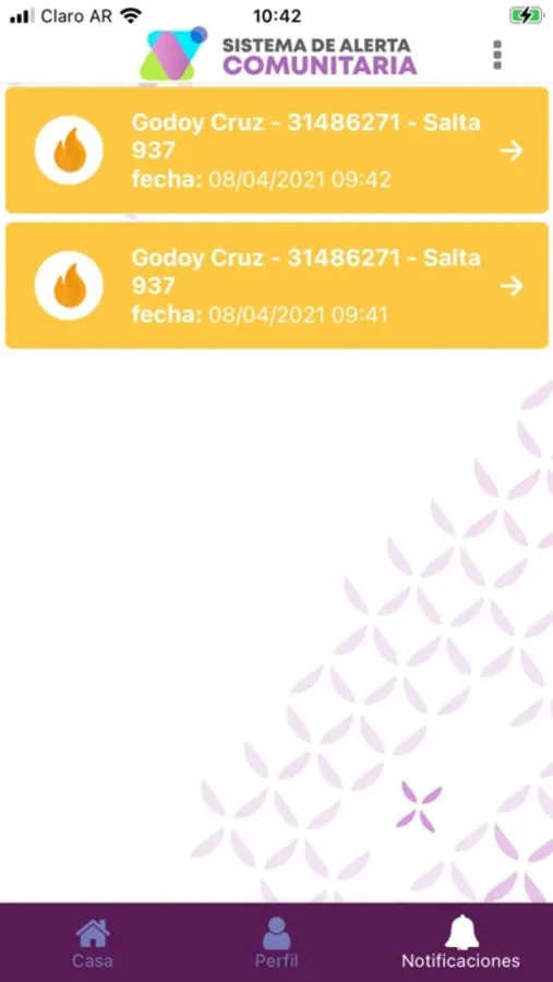 1)"ALERTA": Mediante la aplicación móvil puede notificar un peligro inminente. La app detecta si se encuentra en su casa al momento de pulsar el botón de alerta y en forma simultánea activa la alarma y contacta al centro de monitoreo. Si se encuentra fuera de la zona de cobertura de la central de monitoreo, la aplicación indica su geolocalización al personal del centro de monitoreo. 2)"EMERGENCIA": Permite enviar notificaciones de una emergencia médica con su geolocalización. 3)"VIOLENCIA DE GENERO": Se activa el protocolo de violencia de genero. La app detecta si se encuentra en su casa al momento de pulsar el botón de alerta y en forma simultánea activa la alarma y contacta al centro de monitoreo. Si se encuentra fuera de la zona de cobertura de la central de monitoreo, la aplicación indica su geolocalización al personal del centro de monitoreo. Adicionalmente se pueden enviar Alertas Silenciosas para reportar distintos incidentes pueden agregar nuevas alertas según surja la necesidad de la comunidad, estas alertas permiten adjuntar una descripción al momento de enviar la alerta.