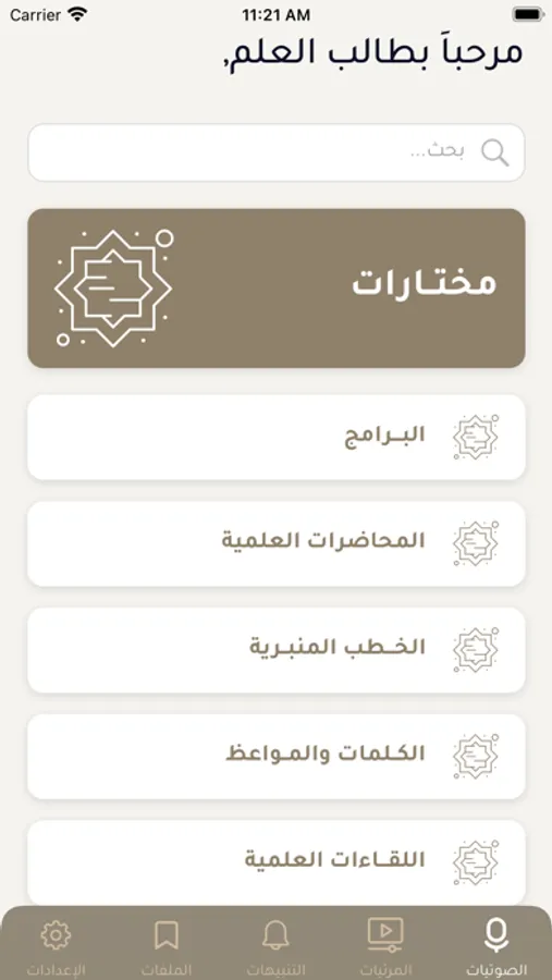 • محرك بحث سريع ودقيق للبحث في عناوين الدروس والخطب والمواعظ والبرامج.