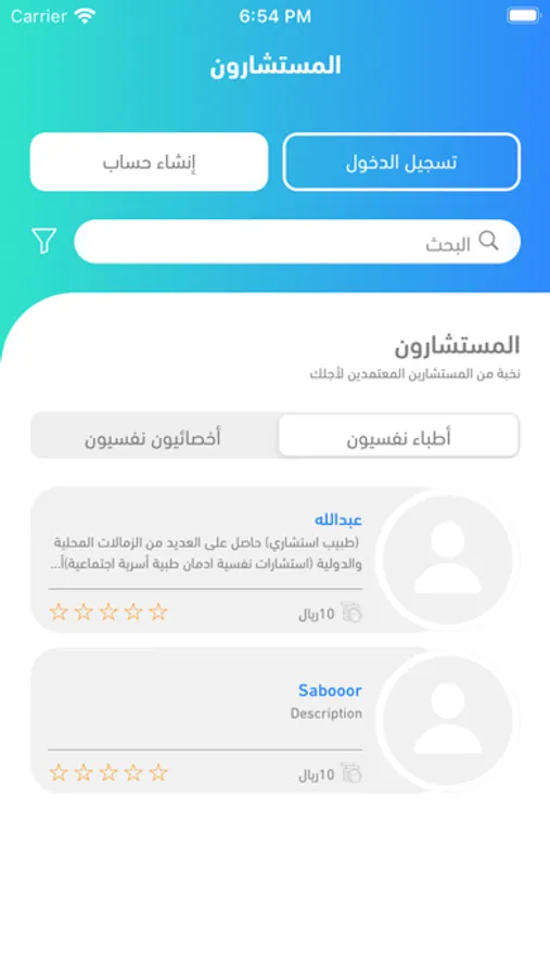 - اختر مستشارك من قائمة المستشارين، واستفد من خيار الترشيح لتحديد نوع المشكلة.