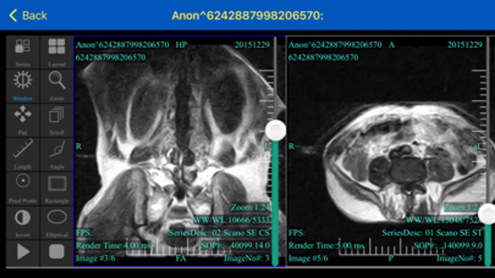 - import DICOM images from internal or external memory (SD card).