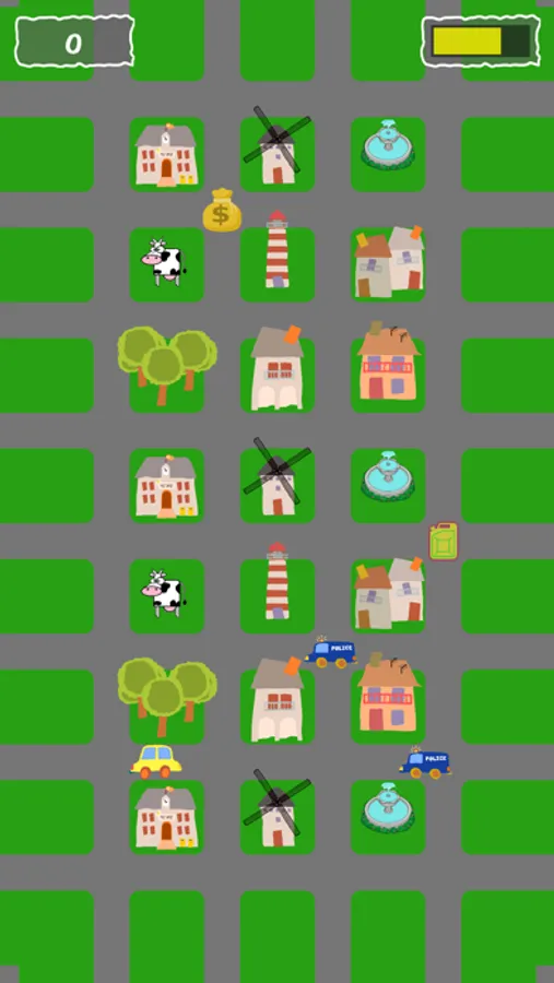 A car chase for all friends of simple tiny games or retro game lovers like pac man from the 80s.