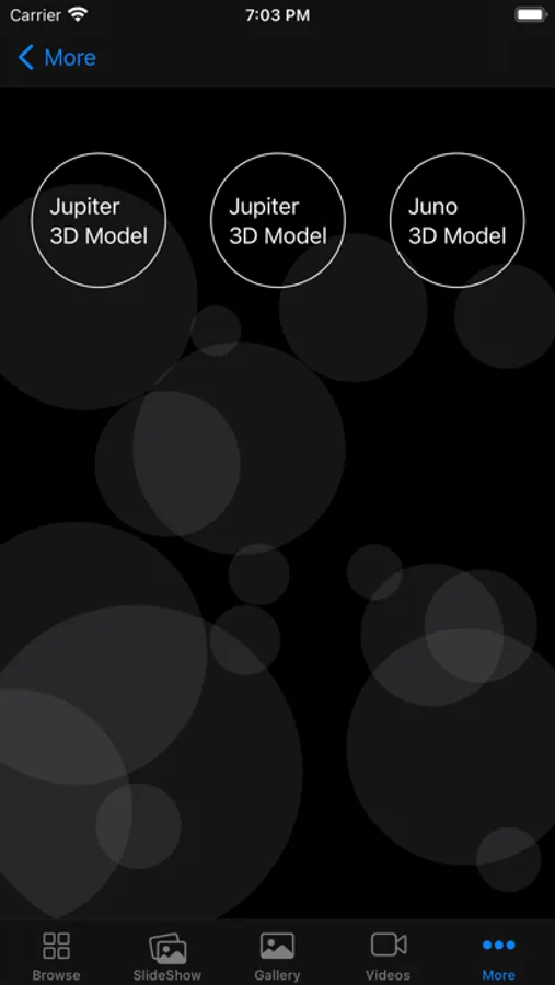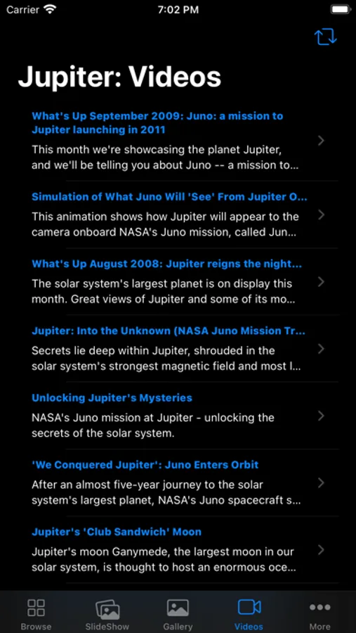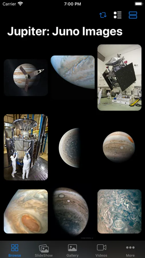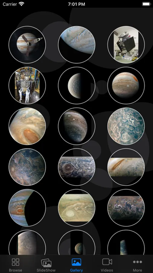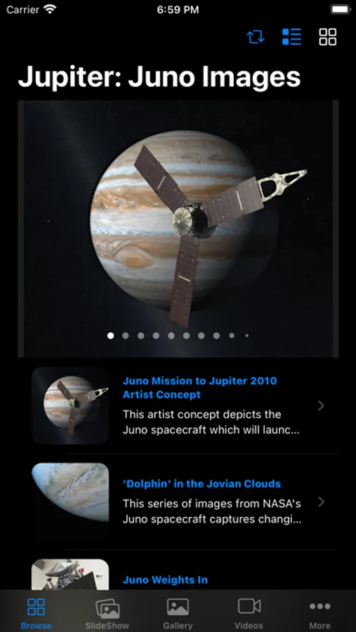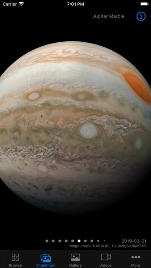 • In the "SlideShow" section, you will be able to browse through hundreds of impressive photos in full screen size and feel as if you were in Jupiter orbit at that moment.