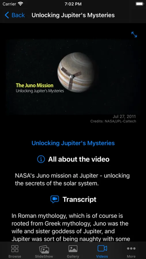 You will have a nice user experience and obtain detailed information while navigating through the beautiful photos taken by Juno.