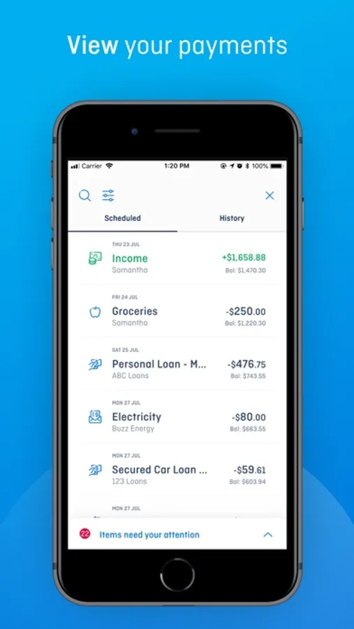 • MyBudget categorises all of your income and transactions into budget streams that you can monitor via the App