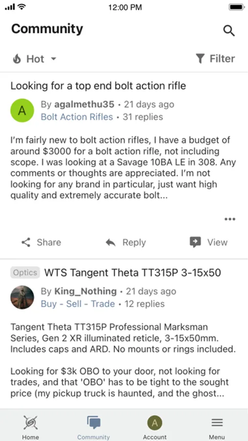 Welcome to the Sniper’s Hide community! Everything you loved about engaging with our community now in a mobile experience. Enjoy quick access to the latest activity, custom gesture support, and set preferences for what you receive notifications about.