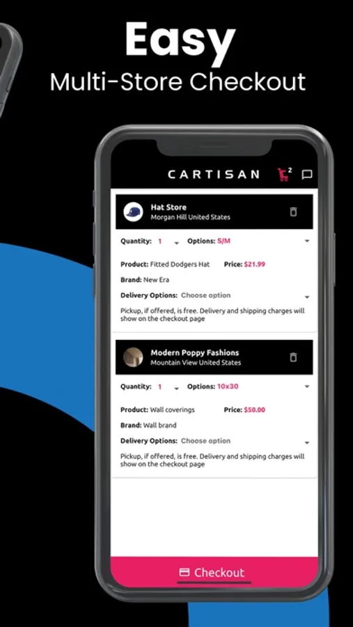 - Buy from multiple stores with Cartisan's simple checkout process