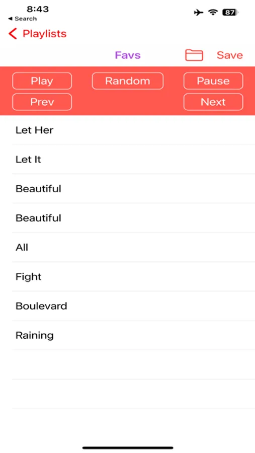 - Select a playlist, then click Play to play from the beginning, Random to shuffle and play in random order, or click any row to start playing from there.