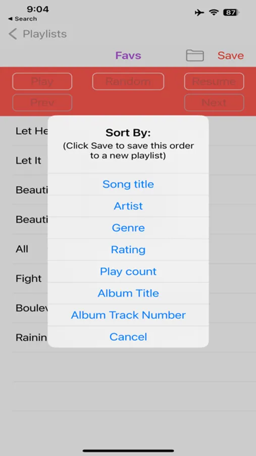 - Sort songs in your music playlists from your phone. Sort by song title, artist, genre, rating, play count, album title or album track number, and save these changes to a new playlist.