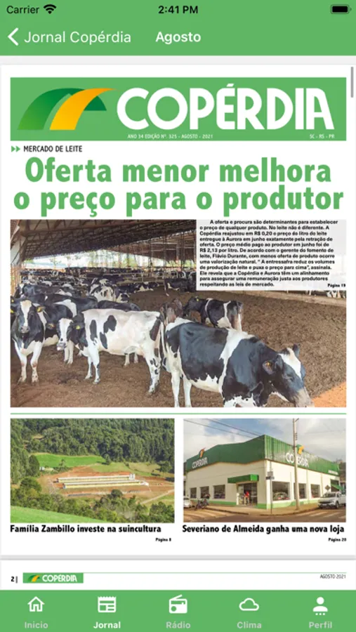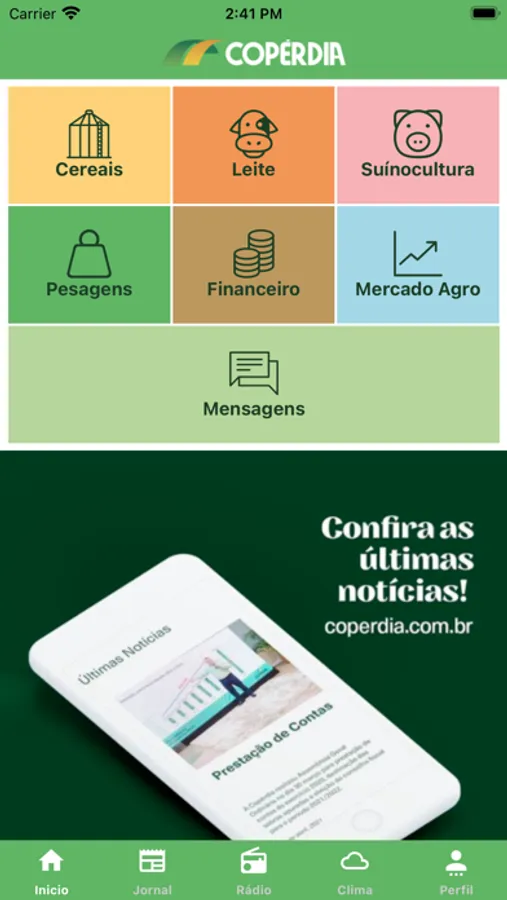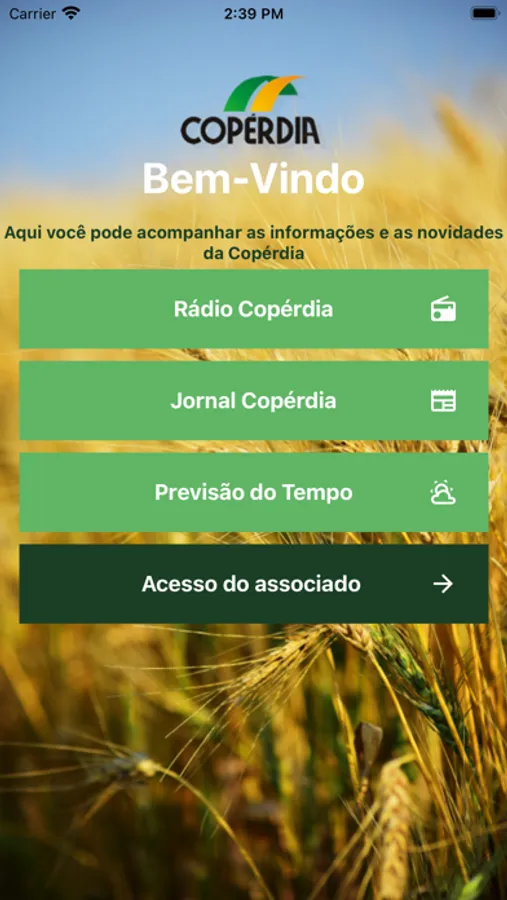 O aplicativo permitirá receber informações atualizadas sobre a Copérdia através do jornal e programa de rádio. O acesso restrito ao associado, permitirá o acesso as informações de comercialização com a Copérdia.