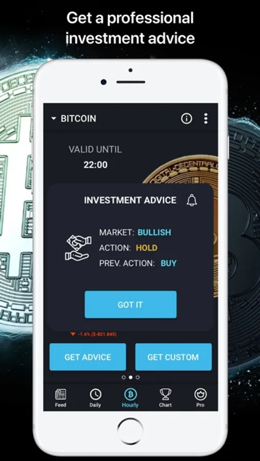 Crypto is the world's fastest growing financial instrument. With us you can execute profitable trades with Investment Advice functionality that incorporates future prices generated by our AI: you will no longer need to spend hours analyzing price movements - get the Buy or Sell action in just one tap!