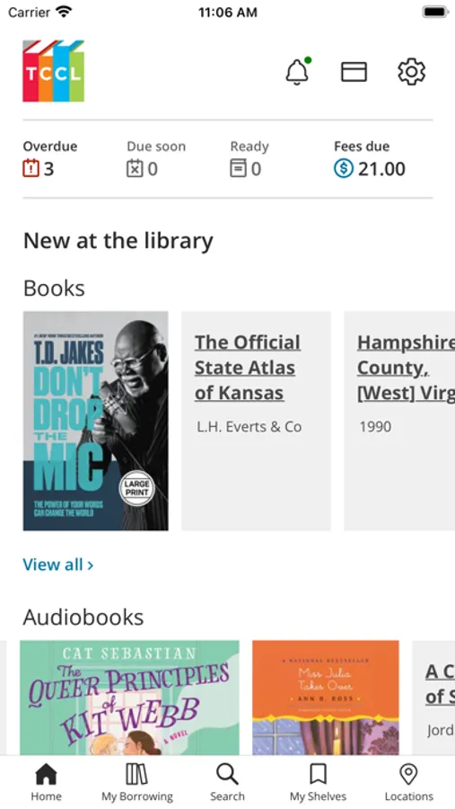 The Tulsa City County Library app is your portal to the library's services from your mobile devices. Check your account, search and browse the catalog, request an item, use your digital library card, renew items and get the latest recommended reads suggestions.