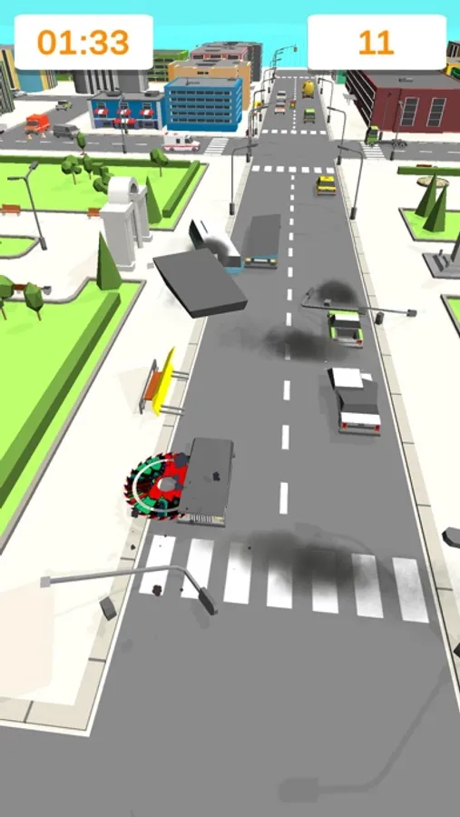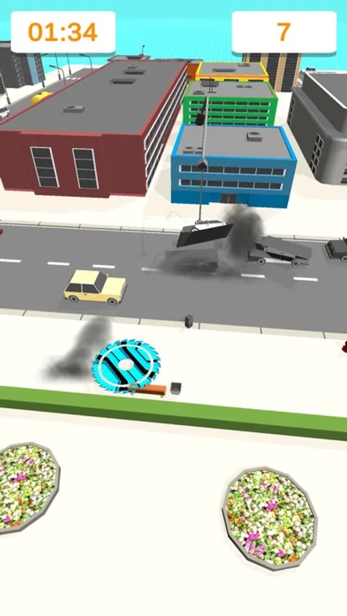 Slice all objects! Slice objects, get bigger, slice more objects. Slice all city.
