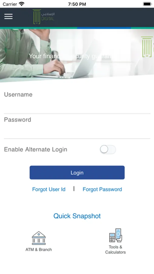 - Locate nearest ATM or Branch