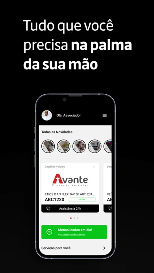 O Aplicativo da Avante Proteção Veicular oferece diversas funcionalidades desenvolvidas especialmente para facilitar a vida do Associado. O aplicativo permite que o Associado faça diversas solicitações e serviços instantâneos, como:
