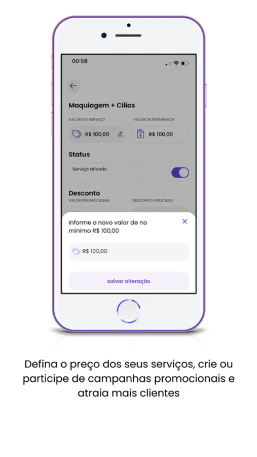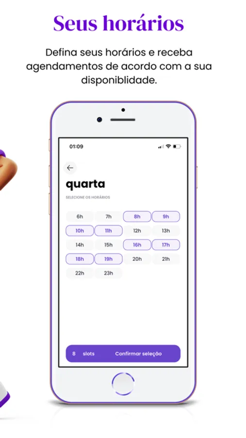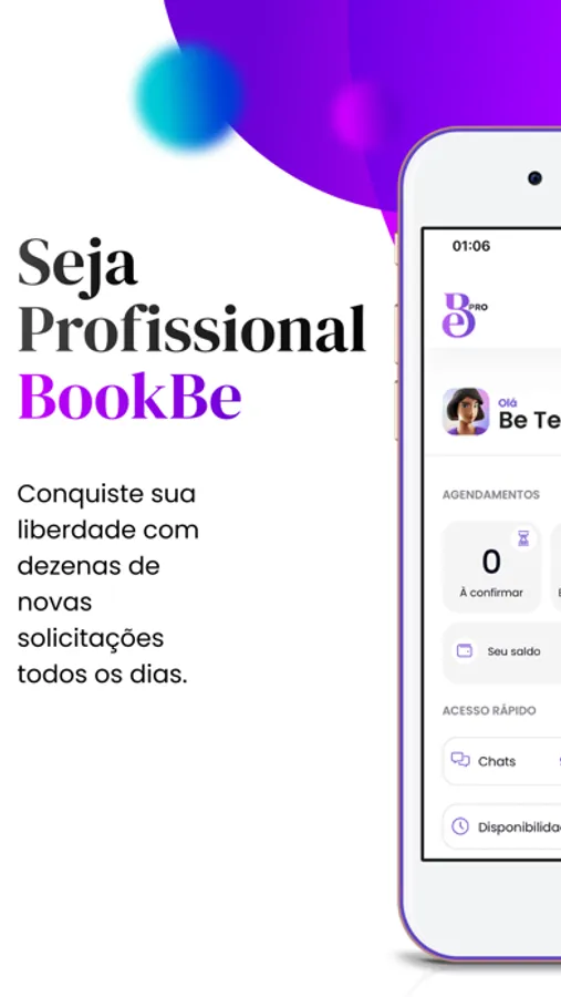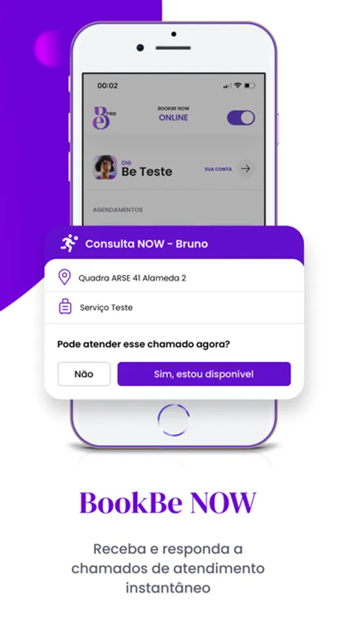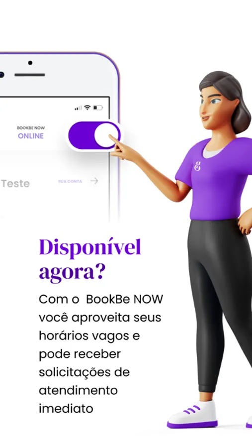 Não importa se é em casa ou no trabalho, seus clientes terão sempre à mão o app BookBe para conferir sua disponibilidade e marcar agendamentos.