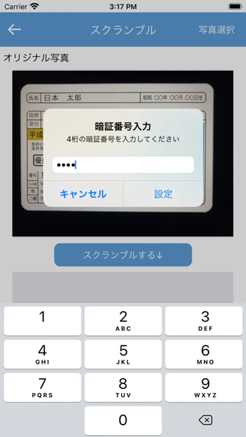 ・「スクランブルする」ボタンをタップすると暗証番号を使うかどうかを聞かれるので選択する