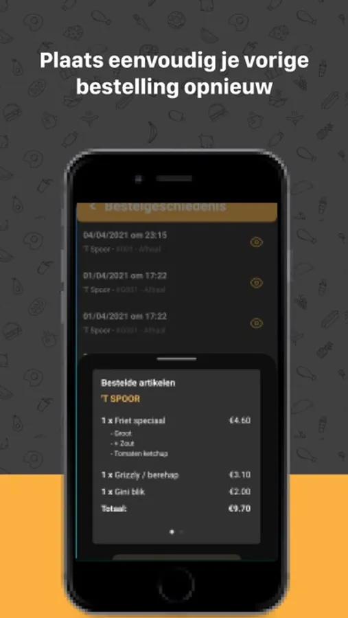 Via de favorieten functie of je bestelgeschiedenis ben je slechts enkele vingerdrukken verwijderd van een nieuwe bestelling. Echt handig!