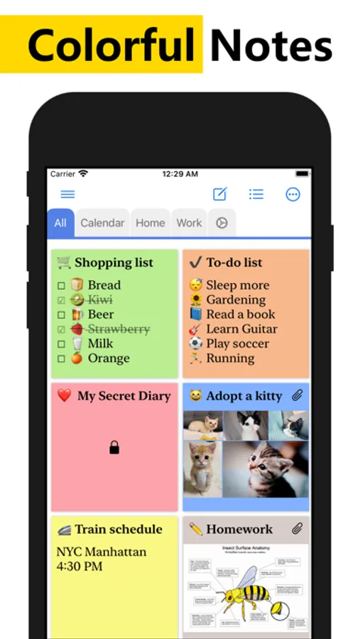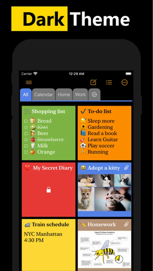 • Place a sticky note widget on your Home Screen. View and access your note directly from Home Screen