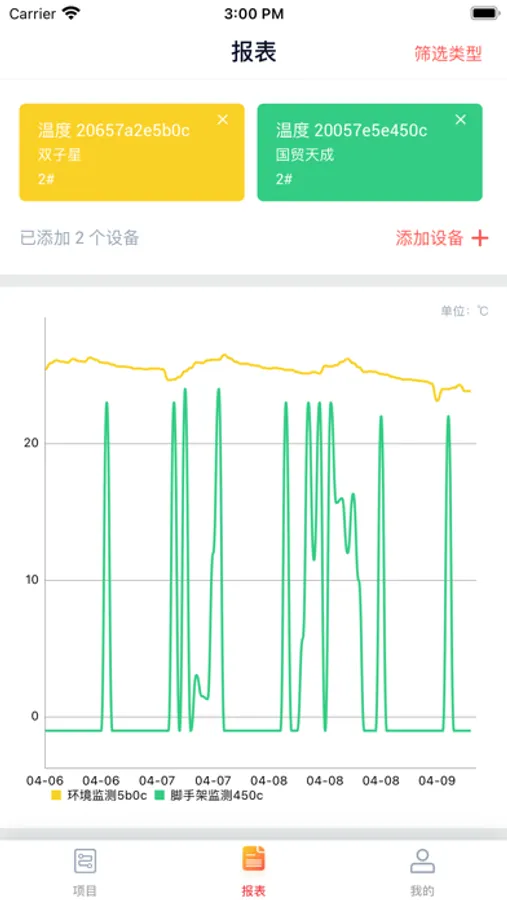 通过智能硬件可以检测该设备周围空间温度、湿度、风向、风速、倾斜角度等信息。当设备倾斜角度达到一定标准时,用户将收到手机报警短信以及APP推送信息,为提高工程安全、应急处置能力提供有力的技术支持。