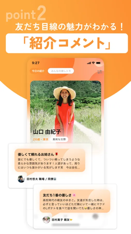 pecoliの大きな特徴として、友だちの紹介文があります。