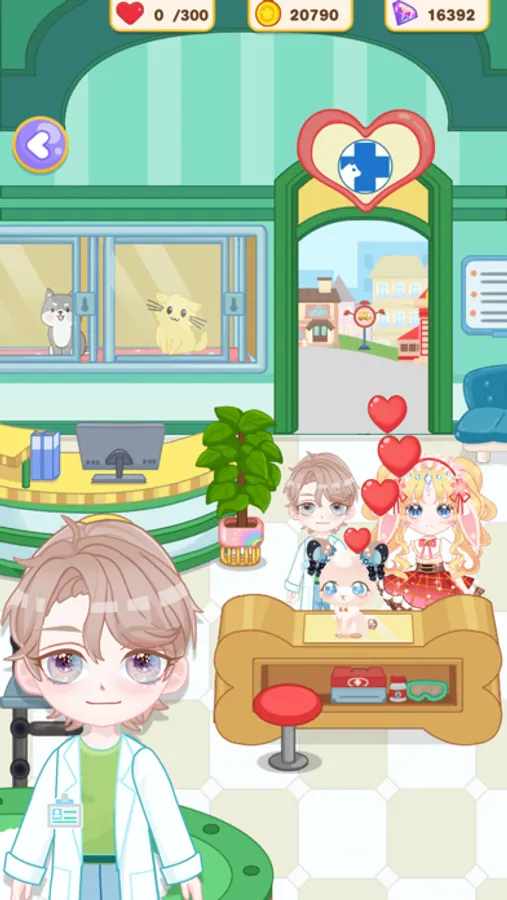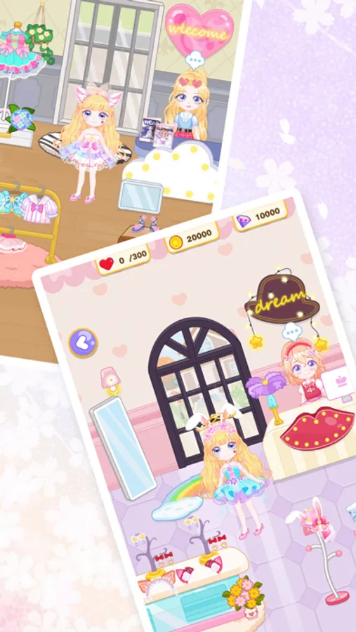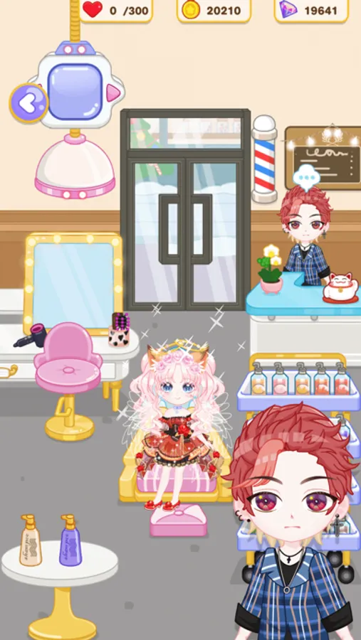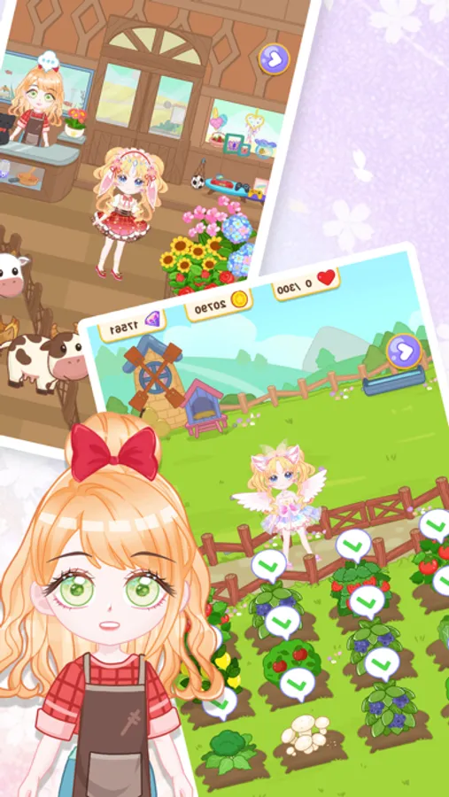 In the anime game, you can carefully nurture and develop your exclusive character, and explore the magical mini-town world with her! There are many fun and surprising task locations in the town: hair salon, beauty shop, furniture store, jewelry store, clothing store, pet shop, police station, hospital, garden, farm, fish pond, etc.. In these places, your character can interact with NPCs freely, and also get experience points and gold coins & diamonds through various task games!