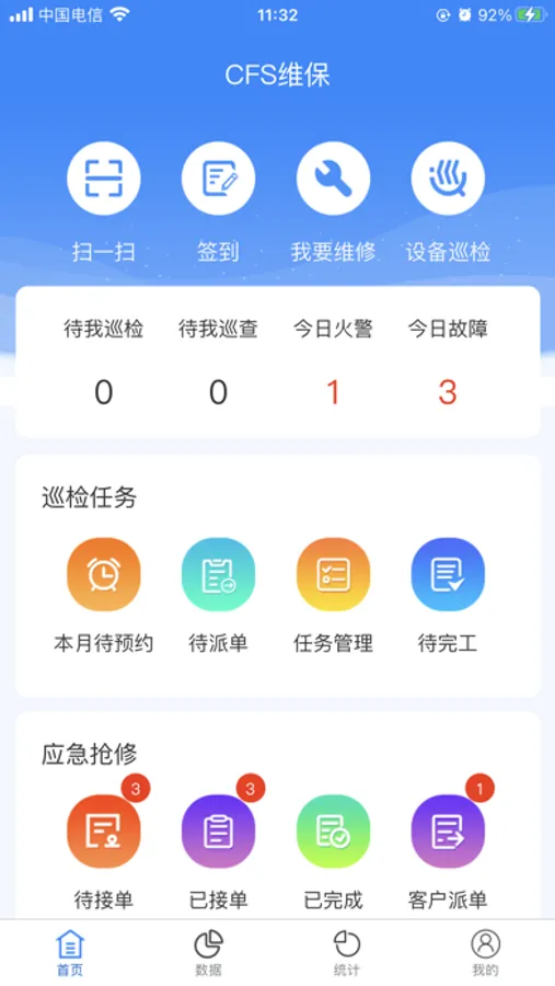 智赣119-维保公司APP可用于对监控管理中心接收到的警情信息分类统计,消防安全管理部门,联网建筑总队,支队,联网单位等操作员可以通过自己的账号登录并查看相关的统计数据。
