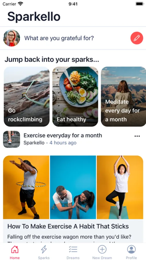 With Sparkello you can be inspired and create your own vision board. Add your dreams. Add pictures that will motivate you. Write down your why.