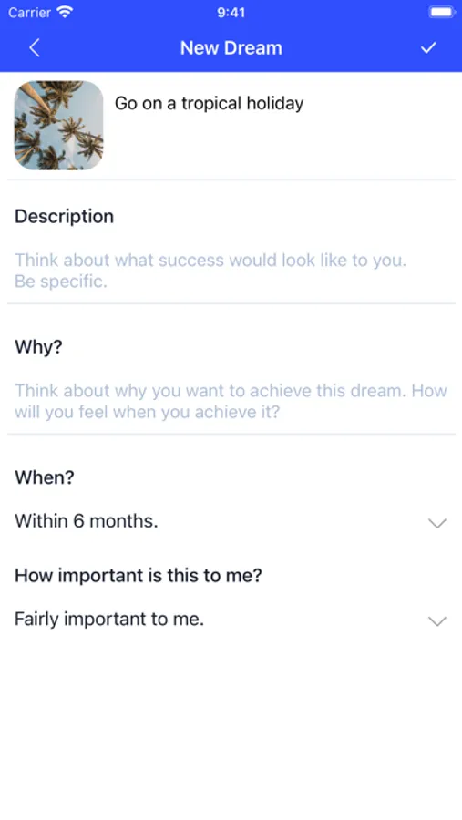 - Add a reason why you want to achieve the dream and discover what motivates you