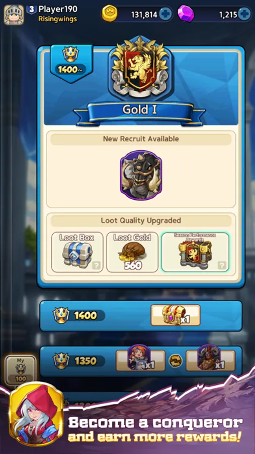 Experience many battles to become the best conqueror and achieve rewards given to conquerors.