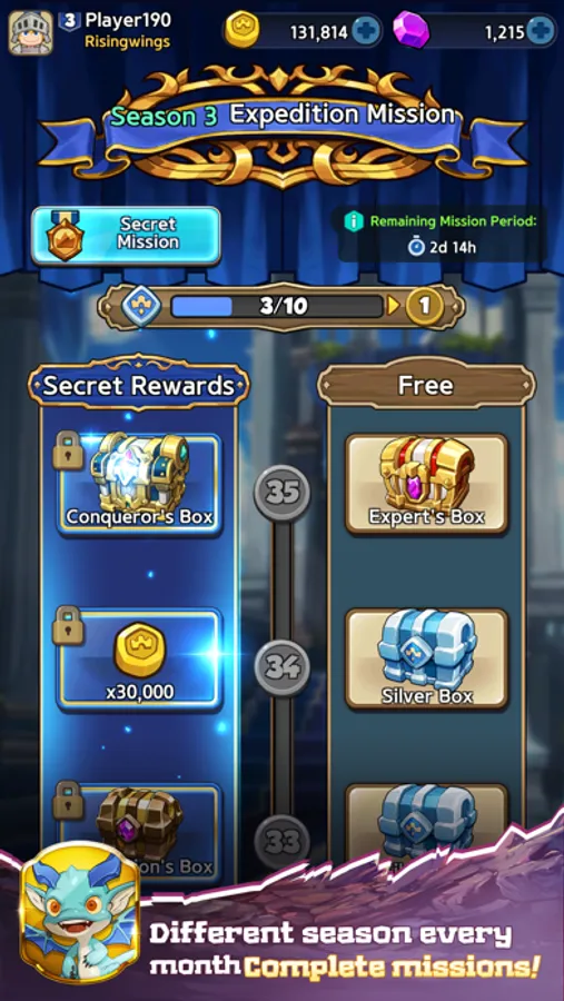Accomplish Expedition Missions that change every season and earn additional rewards.