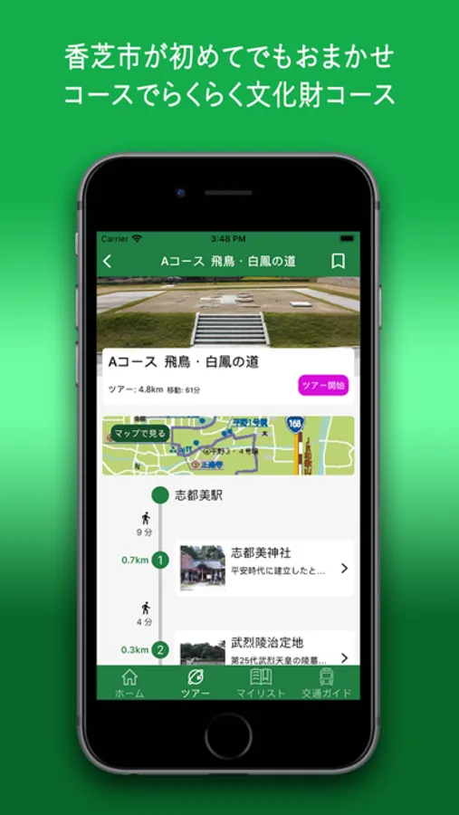 香芝市の古墳や遺跡、寺院や神社、美しい自然を、地図やARなどで楽しく旅行できるアプリです。