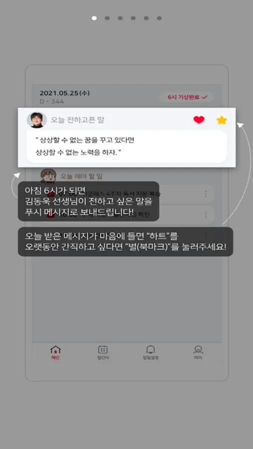 - 매년 수능일 아침까지 아침 6시에 공부 자극 문구, 김동욱 선생님의 응원 등 다양한 메시지를 보내드립니다.