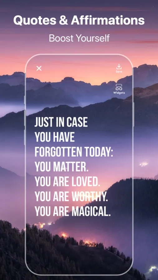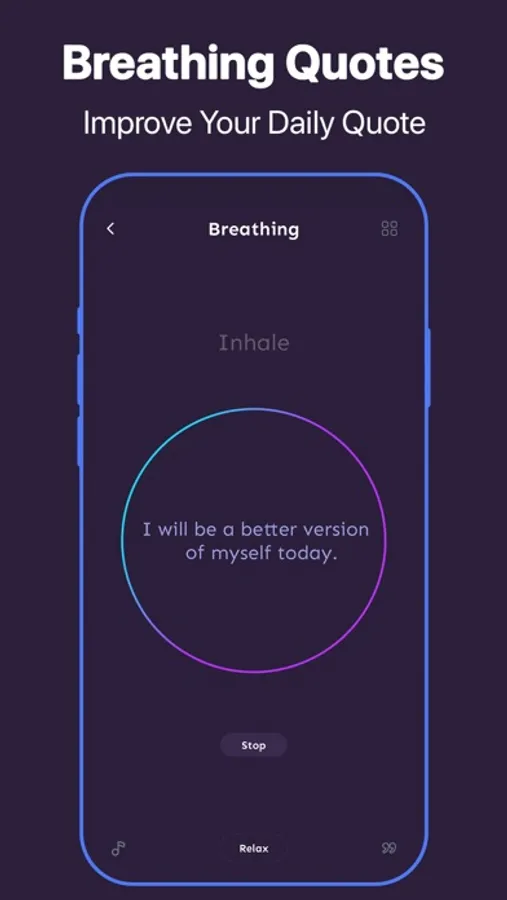 You can simultaneously breathe and practice your favorite quotes and affirmations. This effective and innovative method will help you concentrate and get more from affirmations and quotes. Besides that, it will be helpful in relieving stress and relaxing after a working day. It’s always at hand. If you wish, you can turn off the text block and practice breathing without it.