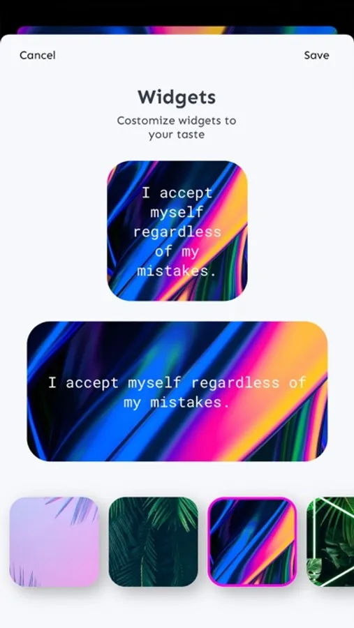 Or do a standard practice with your favorite affirmation. You can also choose any theme and add reminders. Favorite quotes can be saved to your “favorites” folder to keep coming back to it.