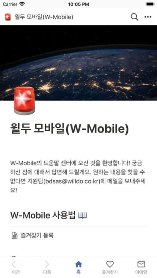 버그 및 개선사항에 대해 이메일 접수 지원창을 제공하고 있습니다.
