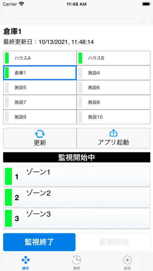 監視先の状況の表示は、アプリ起動時、アプリ操作時、更新ボタン操作時に最新の状態に更新されます。