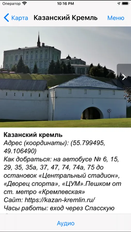 ● АУДИОГИД ПО КАЗАНИ. Рассказы аудиогида озвучены профессиональным диктором. Слушайте рассказы, не отвлекаясь от осмотра достопримечательностей и не теряя время. Не стоит портить зрение, на ходу читая текст на небольшом экране.